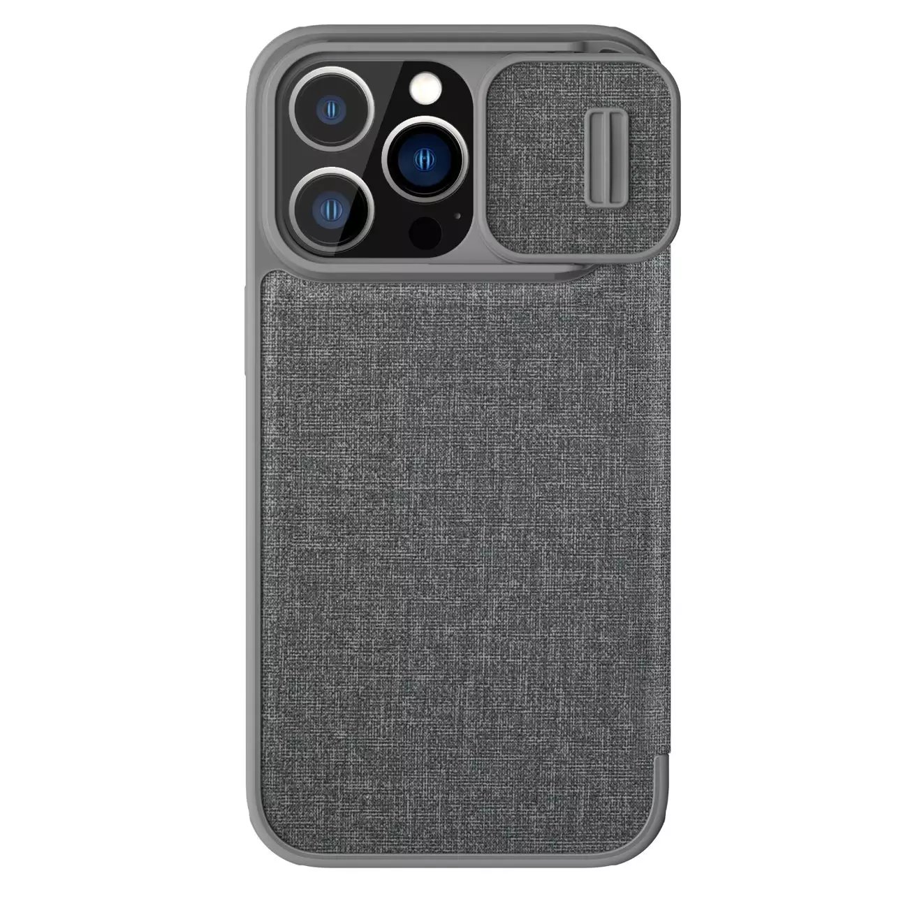 Pouzdro Nillkin Qin Cloth Pro Case pro iPhone 13 Pro Max Ochranné pouzdro na fotoaparát Pouzdro pouzdro Flip Kryt šedé
