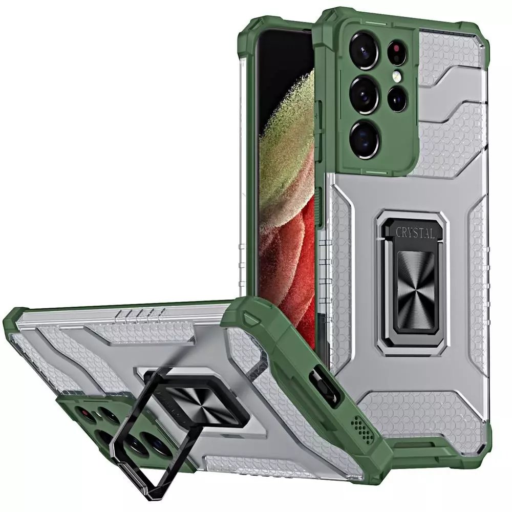 Crystal Ring Case pevný hybridní kryt magnetický kryt pro Samsung Galaxy S22 Ultra zelený