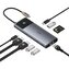 The Baseus 10-in-1 Adapter Hub is a modern device that significantly enhances the functionality of your computer or laptop. Its elegant design, compact size, and matte aluminum housing make the hub both stylish and practical. With dimensions of 142 x 51 x 12mm and a weight of 120g, this device can easily fit into your bag or pocket, making it almost unnoticeable to carry. The adapter is highly compatible with various operating systems, such as Windows, Apple OS, Linux, and Vista, making it a versatile tool for many users.