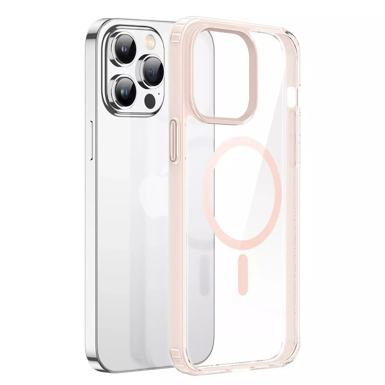 Magnetické pouzdro na iPhone 14 Pro Max s MagSafe s růžovým rámečkem