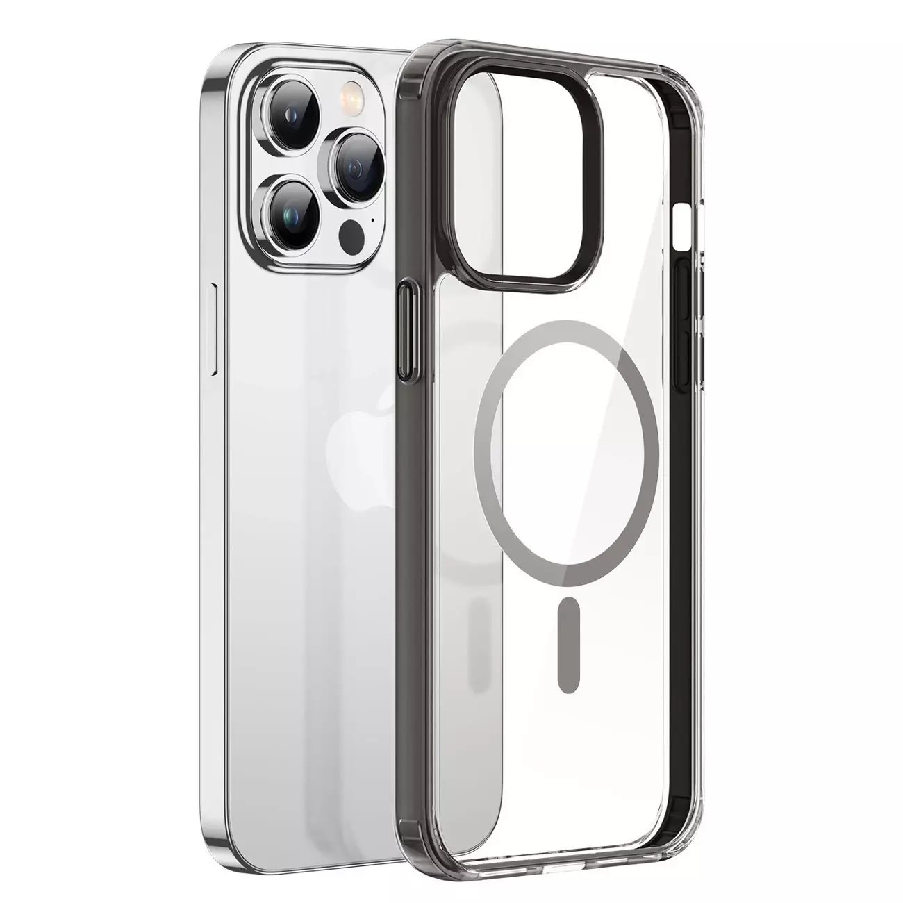 Magnetické pouzdro pro iPhone 14 Pro Max s MagSafe s šedým rámečkem