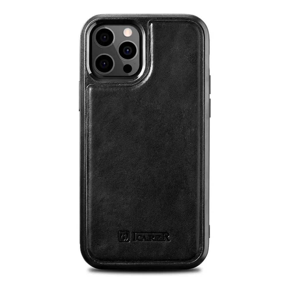 Pouzdro iCarer Leather Oil Wax potažené pravou kůží pro iPhone 12 Pro Max černé (ALI1206-BK)