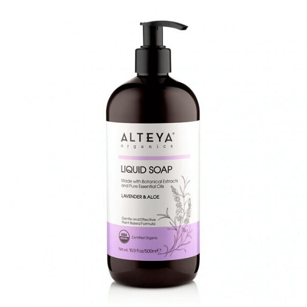 Tekutá mýdla od značky Alteya Organics se svým šetrným složením jemně čistí pokožku bez zbytečného vysoušení. Obsahují organický základ, který pokožku hydratuje a vyživuje. Aromatické esenciální oleje zase pomáhají pokožce udržet její přirozenou rovnováhu. Aloe Vera hydratuje pokožku a zanechává ji hebkou a hladkou. Levandulový olej zase působí antimikrobiálně a jeho aroma napomáhá udržet uvolněnou a harmonickou náladu.