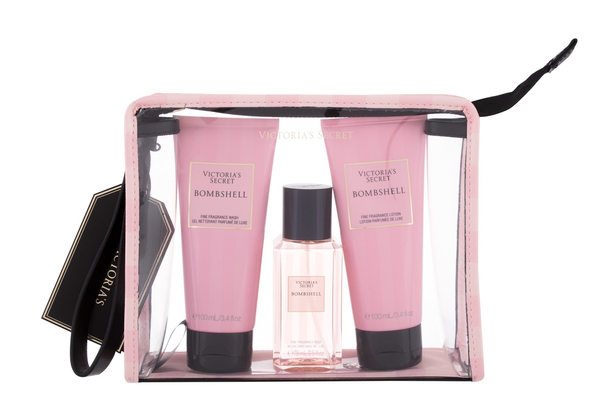 Victoria´s Secret Bombshell vyživující tělový spray 75 ml + tělové mléko 100 ml + sprchový gel 100 ml + kosmetická taštička