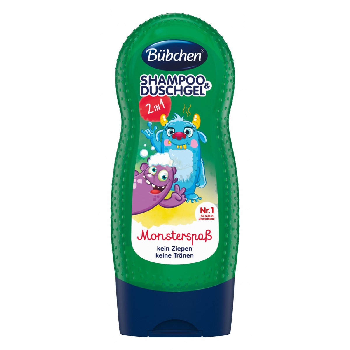 Bübchen dětský šampón a sprchový gel Příšerky - 2v1 - 230mlBübchen 2v1 kombinuje výhody dětského vlasového šamponu a sprchového gelu do jednoho výrobku. Skvělá vůně a bohatá pěna, která okouzlí každé dítě. Dětská kosmetika od značky Bübchen šetrně čistí a pečuje o dětskou pokožku, zvlhčuje pokožku a dodává příjemnou vůni.Produkty Bübchen pro děti jsou dermatologicky testvané a mají neutrální pH.