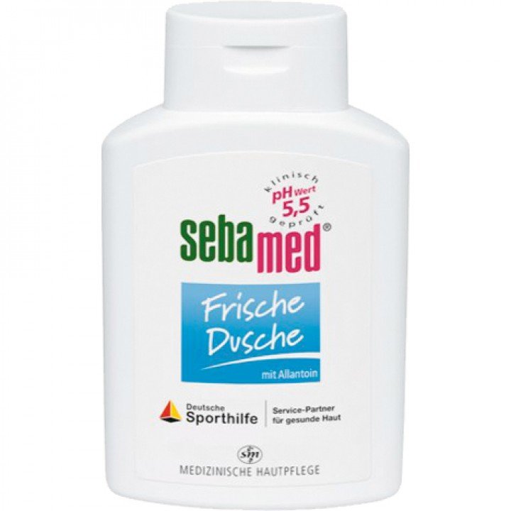 Sebamed Fresh PH 5,5 s Allantoinem - sprchový gel 200ML Speciální sprchový gel, který je výborný pro regeneraci kůže, regenerace a hojení kůže je zaručeno díky složce Allantoinu, který pomáhá při hojení. Používá se také při lokálních popáleninách, na drobné ranky a trhlinky nebo při hemoroidech. Tento sprchový gel si oblíbíte a Vaše tělo se bude cítit čistě a svěže. Sprchový gel je vyroben v Německu pro prodej na německém trhu. Obvykle se produkty Sebamed prodávají také v lékárnách. Balení 200ML v plastové lahvi