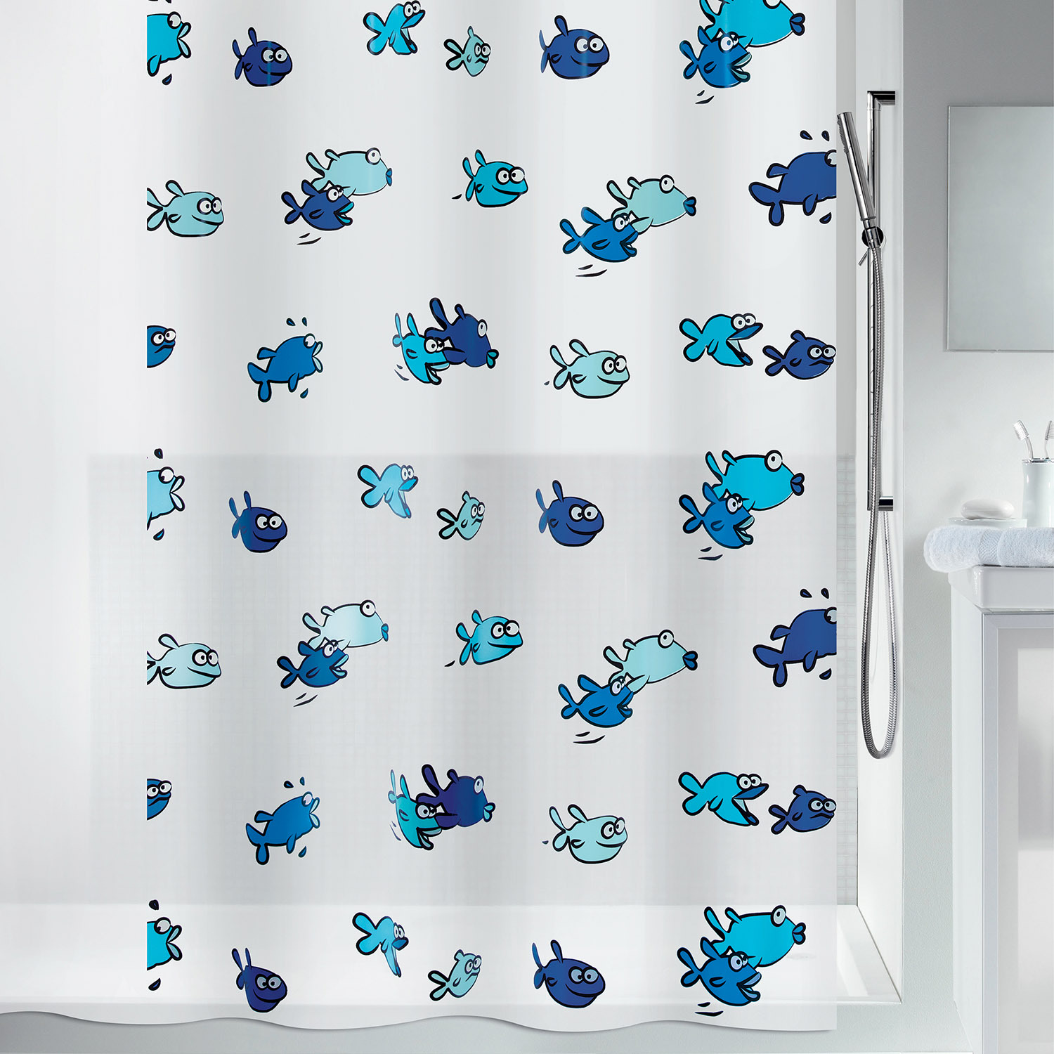 Spirella sprchový závěs HUGO, motiv rybiček, bílo-modrý, PEVA, 180 x 200 cm