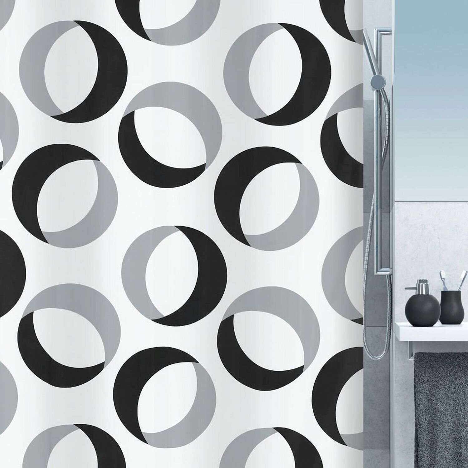 Spirella sprchový závěs RINGS, motiv prstenců, šedo-černý, 180 x 200 cm, polyester