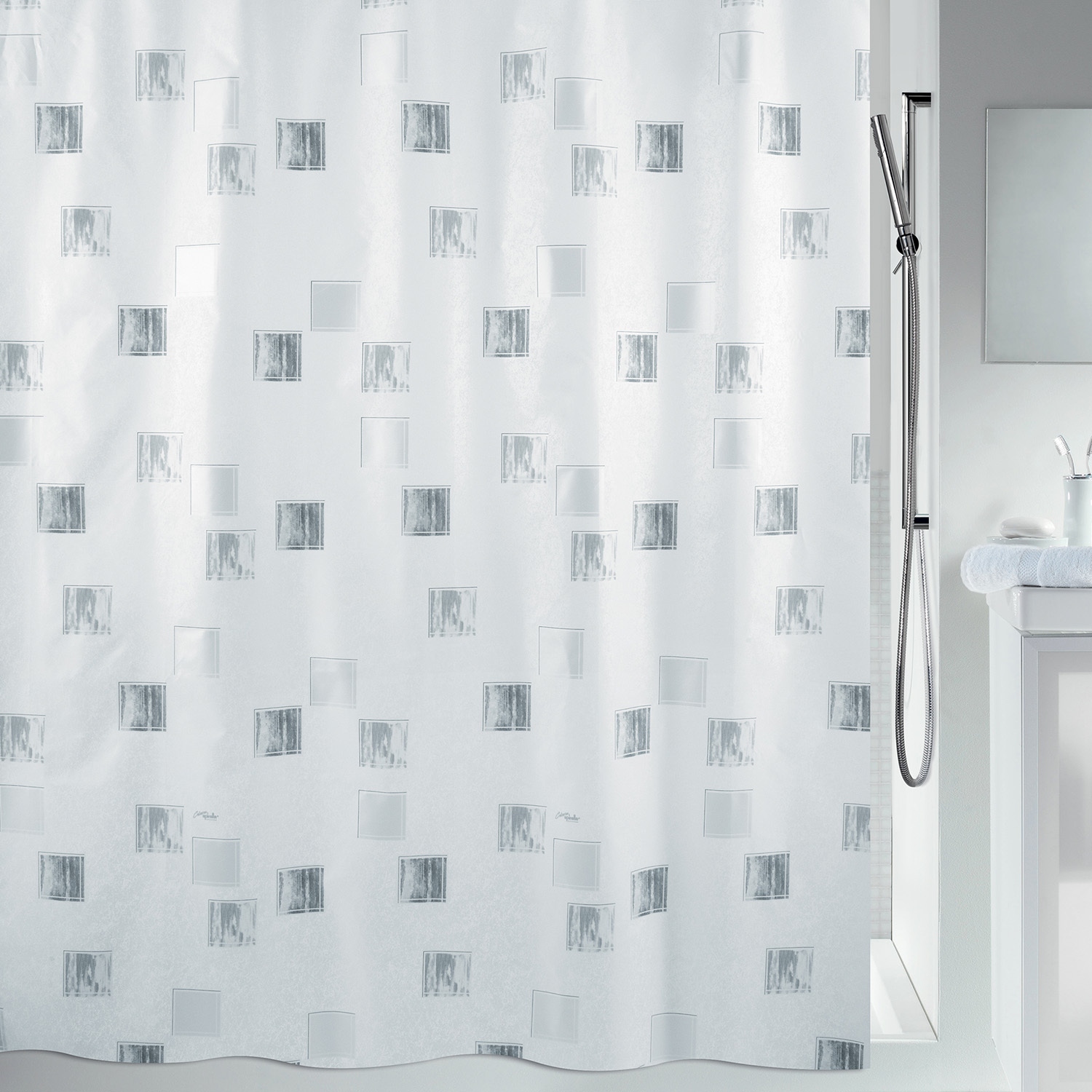Spirella sprchový závěs MILANO, motiv čtverců, bílo-stříbrný, 180 x 180 cm, polyester