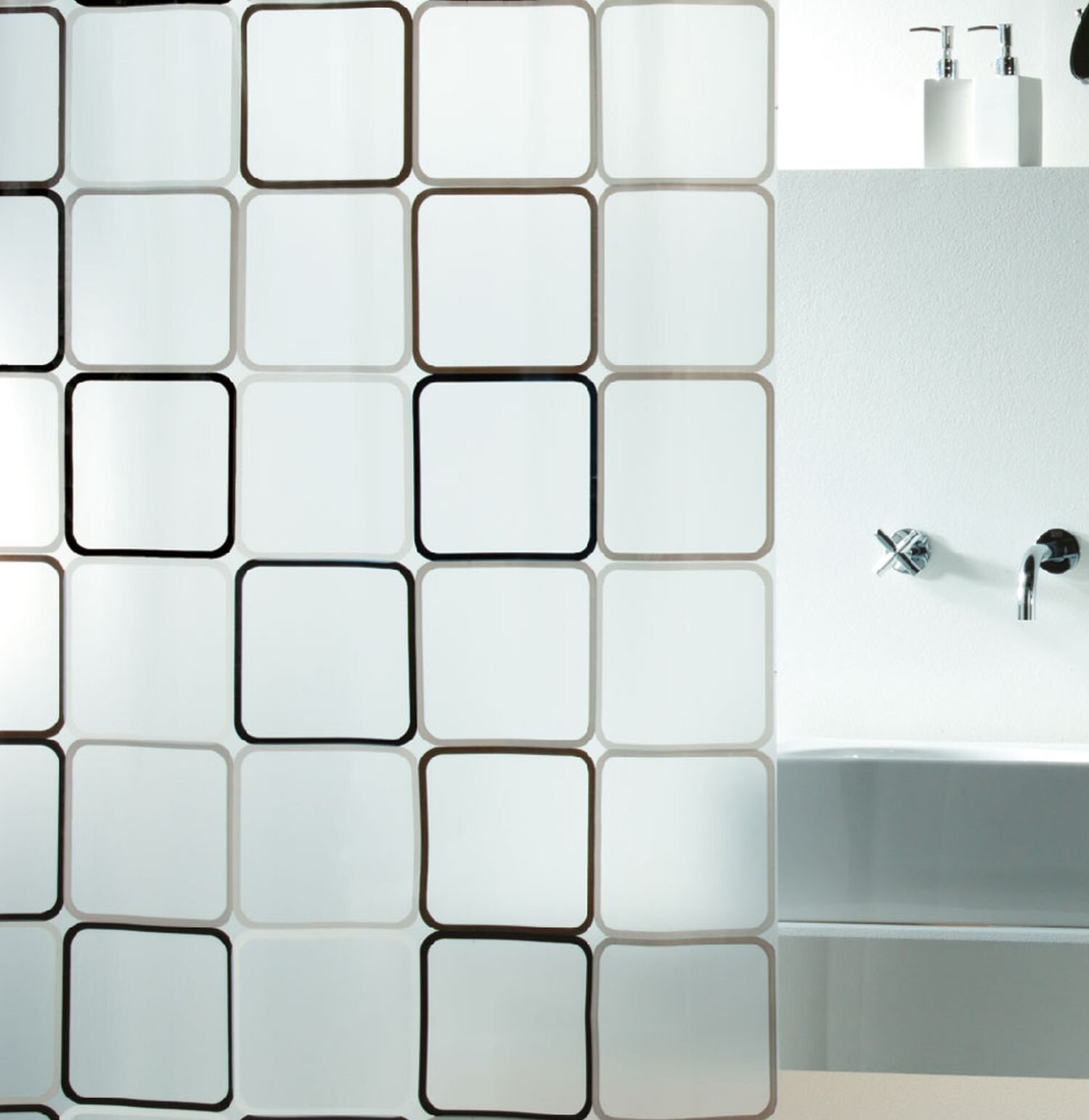 Spirella sprchový závěs FRAME, motiv čtverců, bílo-černý, PEVA, 180 x 200 cm