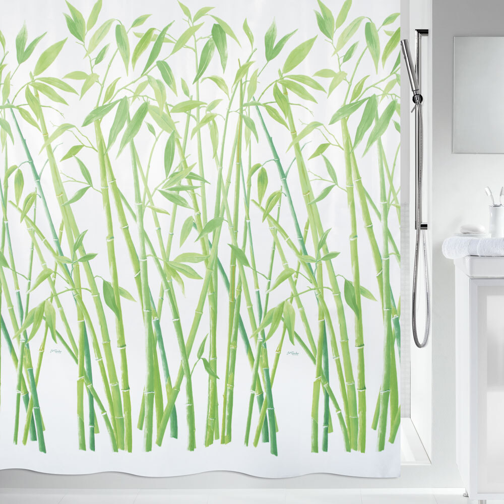Spirella sprchový závěs BAMBUS, motiv bambusy, bílý 120 x 200 cm, polyester