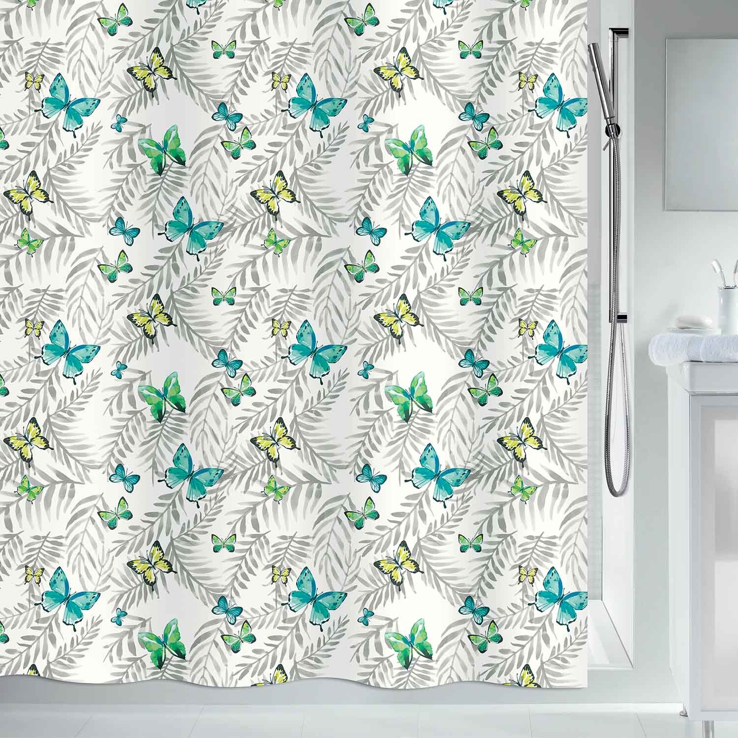 Spirella sprchový závěs PAPILLONS, motiv motýli, bílý, 120 x 200 cm, polyester
