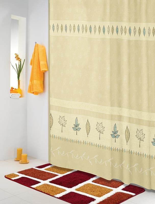 Koupelnové závěsy - béžovotyrkysové lístky - 180x200 cm