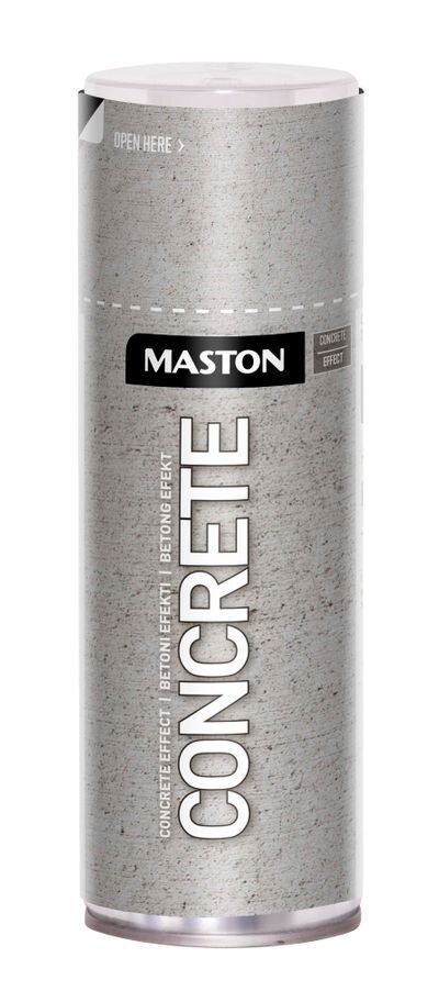 Dává ošetřovanému povrchu vzhled drsného a nerovného povrchu podobného skutečnému betonu.CONCRETE EFFECT SPRAY PAINT dává ošetřovanému povrchu vzhled drsného a nerovného povrchu podobného skutečnému betonu. Použijte na různé druhy materiálů jako kov, dřevo, kámen, beton, hlína, lepenka, sklo a plastové předměty a dejte jim pevný šedý betonový vzhled. Konečným výsledkem je pevný, strukturovaný povrch, který je silný, odolný vůči počasí a UV záření.