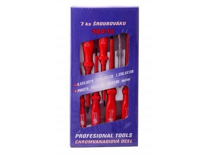Sada nejpoužívanějších typů šroubováků FESTA a zkoušečky, které mají certifikaci elektro VDE 1000 V, IEC/EN 60900-2004.