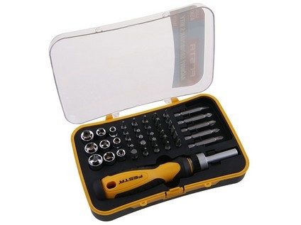 Sada šroubovák s bity 26ks, 1/4. CrV, magnetická koncovka. Sada obsahuje: 1x šroubovák s bity, 25 bitů. Plochý (34567), PH (0123), PZ (123), T (10152025305678910 mm).