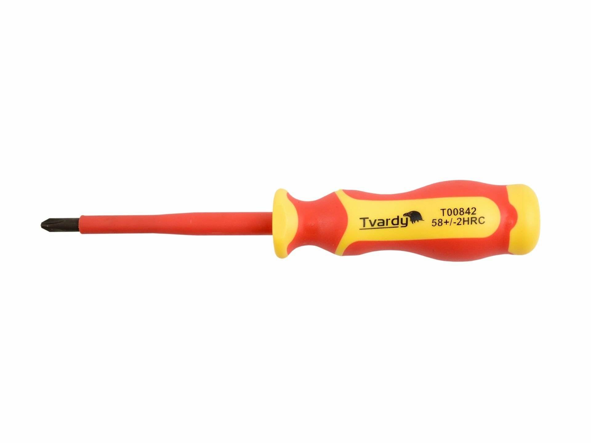 Profesionální izolovaný šroubovák PH2 je určený zejména pro elektrikáře. Jeho ergonomická vícesložková rukojeť zajišťuje účinnou izolaci až do 1000 V a je vhodný pro všechny druhy prací na instalacích nízkého napětí. Hrot šroubováku je vyroben z vysoce kvalitní oceli S2, která byla pro dosažení optimálních parametrů podrobena vhodné tepelné úpravě. Tvrdost čepele je v rozmezí 56-60 HRC. Stopka šroubováku je naproti tomu vyrobena z oceli CRV, která se vyznačuje vyšší pružností.