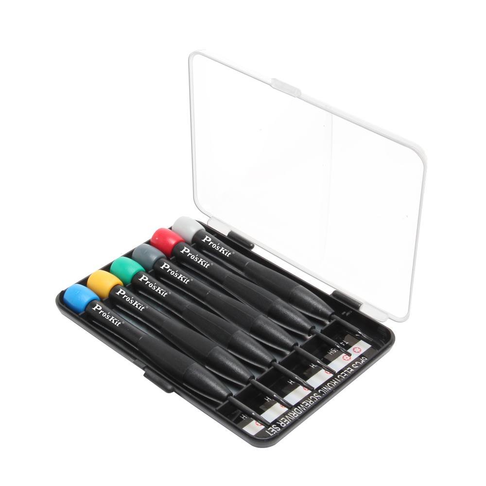 Sada 6ks šroubováků.Rukojeť šroubováků je vyrobena z plastu ABS, samotné šroubováky pak z nástrojové oceli (CrMoV).Tvar šroubováku: hvězdaRozměry: T4, T5H, T6H, T7H, T8H Délka 110 mm