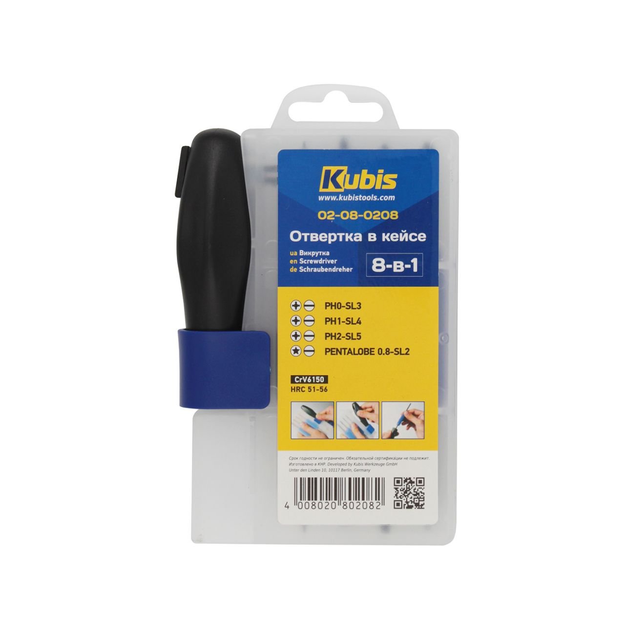 Šroubovák 8 v 1 v pouzdře, PH2-SL5 мм, PH1-SL4 мм, Pentalobe 0.8-2 мм, CrV6150, HRC 51-54 | 02-08-0208