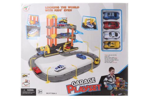 - Obsah sady: garáž na 2 patra + 4 autíčka