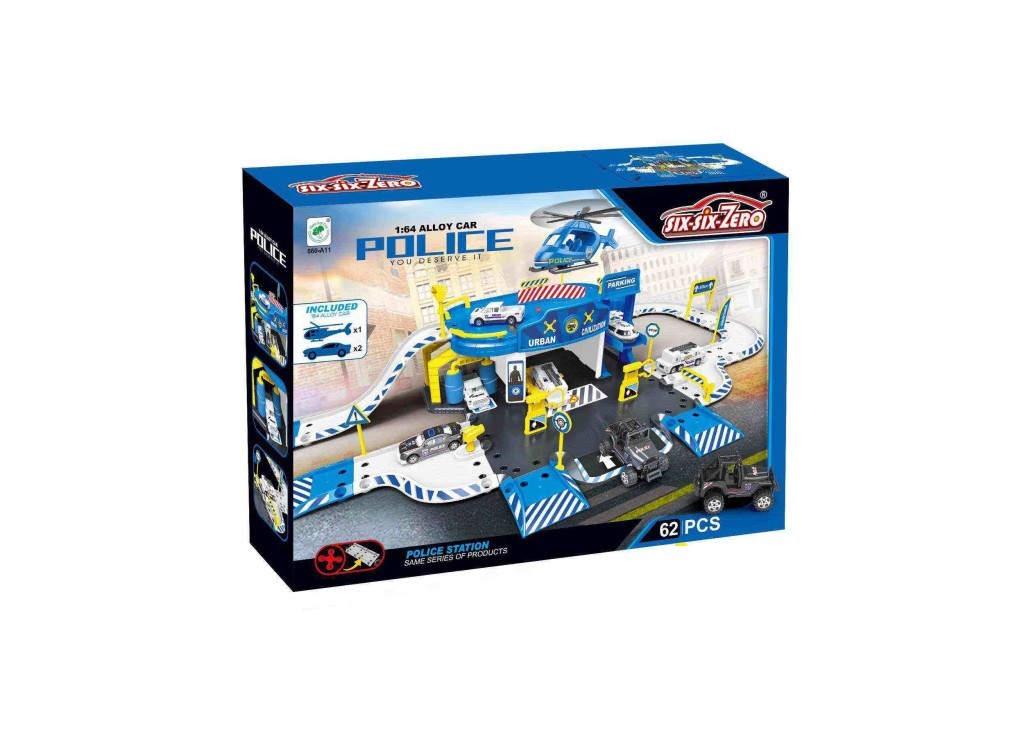 - Součástí balení: policejní stanice s garáží, 2 kovová autíčka ve stupnici 1:64, 1 vrtulník
