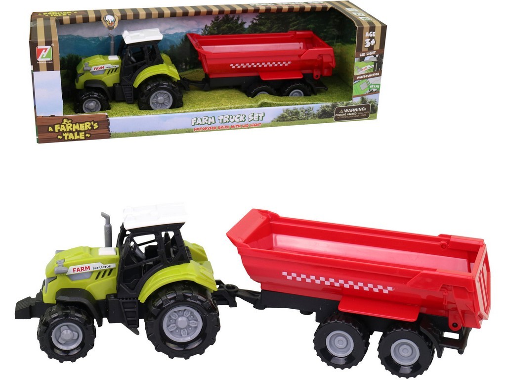 Traktor s vlečkou, volná kola, 27,5 x 6 x 6 cmHračka je určena pro děti 3+.Rozměr hračky je 27,5 x 6 x 6 cm.Materiál hračky je plast.Balení hračky je display box.Produkt je určený pro kluky.Ke zprovoznění produktu jsou potřeba 3 AG13 baterie.Baterie nejsou součástí balení. číst celé