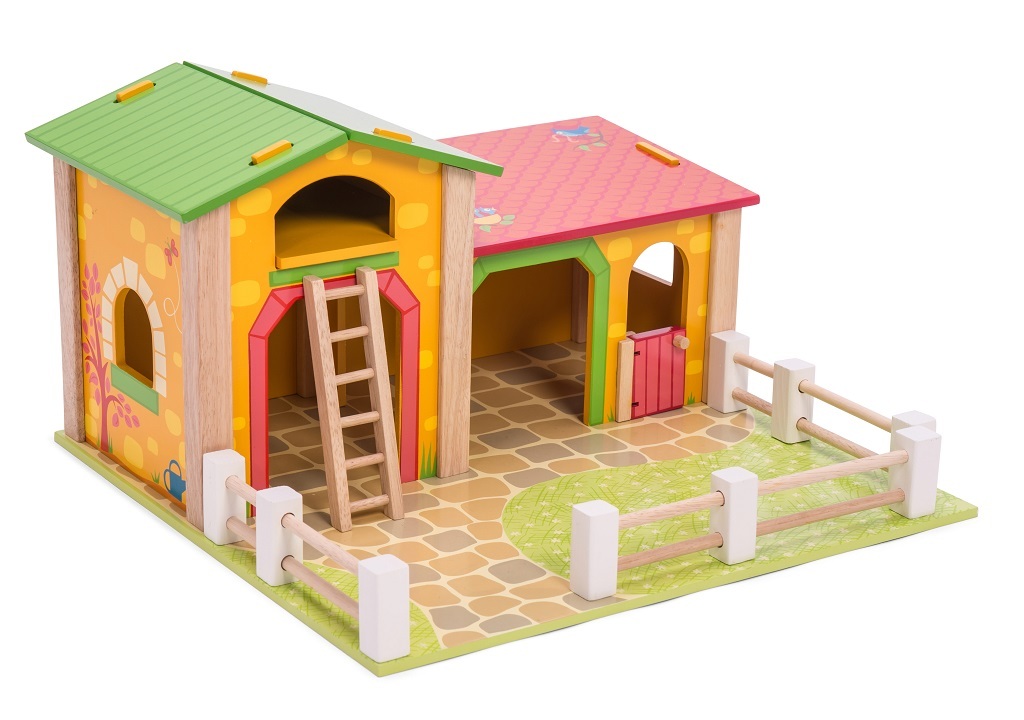 Vytvořte si velkou farmu! Dřevěná ručně malovaná stáj pro hospodářská zvířátka. Stáj je rozděla na dvě části a půdní prostor - seník. Nezbytnou součástí stáje je žebřík. Okolo malovaného dvorku na základní desce jsou ploty. Britská značka Le Toy Van výrábí tradiční, vysoce kvalitní, prémiové dřevěné hračky v moderním designu. Kvalitu hraček zajišťuje pečlivý výběr přírodních materiálů a vyjímečné detailní zpracování. Le Toy Van hračky jsou ručně malované. Inspirována dětskou představivostí je společnost Le Toy Van hrdá na to, že navrhuje inovativní hračky, které podporují plnohodnotný rozvoj dětí. Společnost Le Toy Van byla založena v roce 1995 v anglickém Surrey, jako rodinná firma. Zakladaleli byli Georges Le Van a jeho syn Steven Le Van, kteři jsou pokračovateli rodinné společnosti s více než 150 letou historií a zkušenostmi v ruční výrobě dřevěných hraček. Během posledních 25 let se společnost Le Toy Van stala důvěryhodným výrobcem dřevěných hraček. Oceněné hračky se nyní prodávají ve více než 50 zemích světa. Všechny hračky splňují nejpřísnější bezpečnostní normy ICTI, ISO 9001, EN-71 a ASTM.