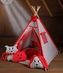 Stan pro děti týpí s velkou výbavou - šedý, červený; 100 % bavlna