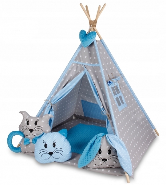 Baby Nellys Stan pro děti týpí s velkou výbavou - šedý, modrý