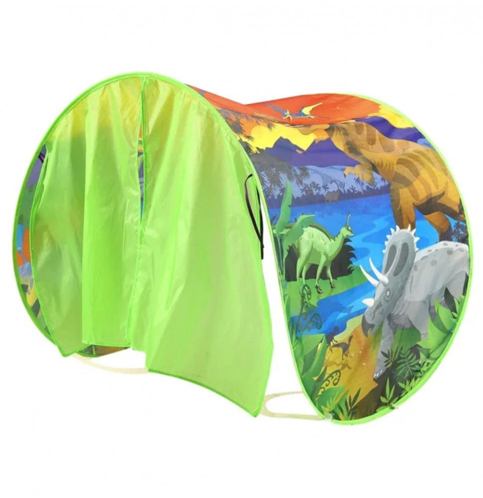 Tento praktický stan se snadno rozloží a upevní pod postel pomocí přezek, čímž vznikne bezpečný a útulný úkryt, kde si děti mohou číst, hrát si nebo klidně přespávat. Díky designu s dinosaurem si stan ihned zamilují všechny malé dobrodruhy a stane se jejich oblíbeným místem v pokoji.