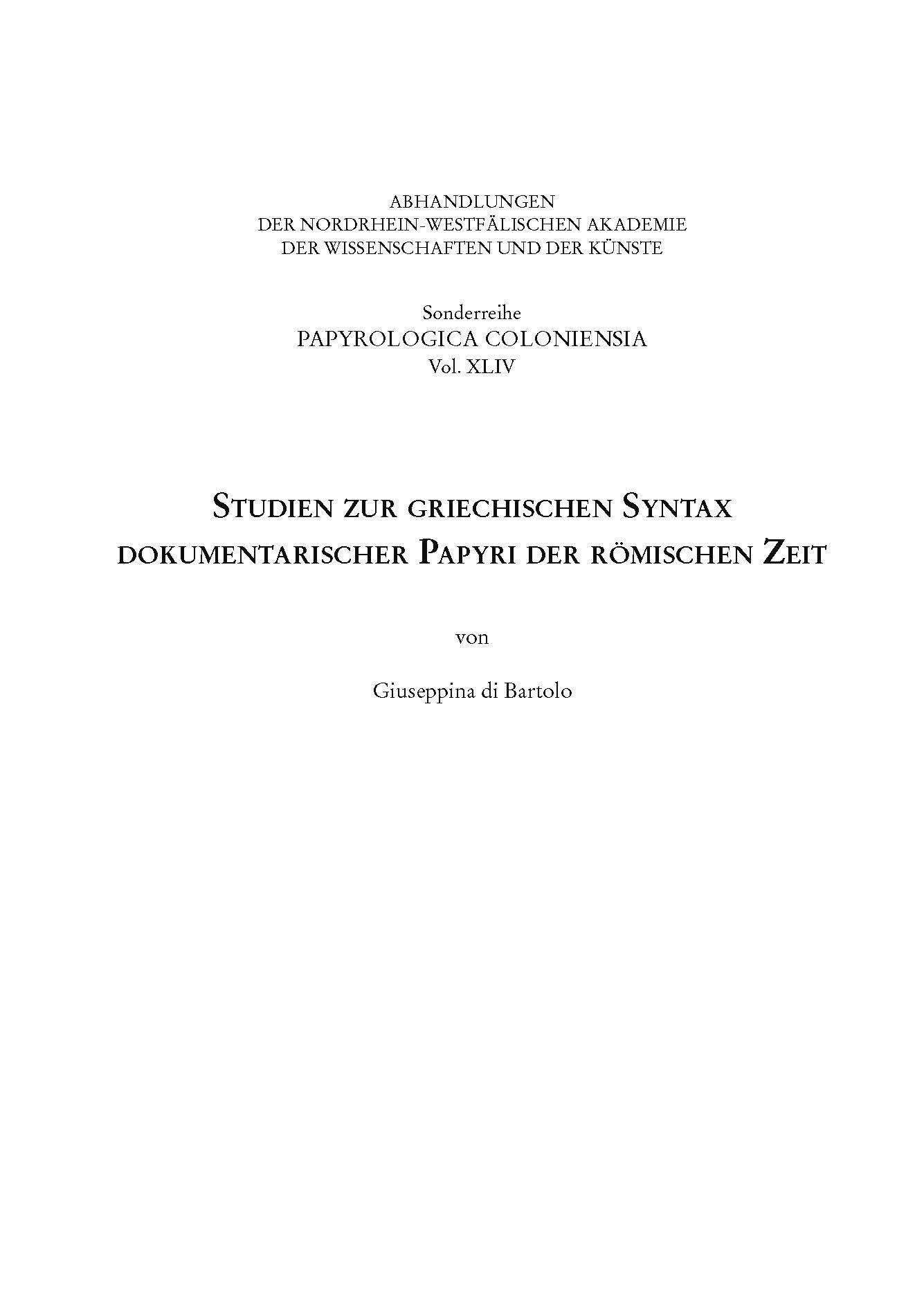 Studien zur griechischen Syntax dokumentarischer Papyri der römischen Zeit (německy)