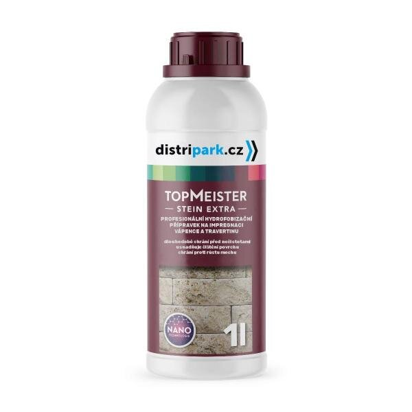 Přípravek TopMeister Stein Extra je profesionální nano přípravek nové generace určený k ochraně a impregnaci vápence a travertinu. Díky speciálně zvoleným složkám ve zvýšené koncentraci a nanočásticím vytváří impregnant ochranný povlak na povrchu a proniká do materiálu až do hloubky více než 10 milimetrů. Takto zajištěný vápenec či travertin je účinně chráněn proti pronikání vody a nečistot, díky níž si zachovává svůj původní vzhled.