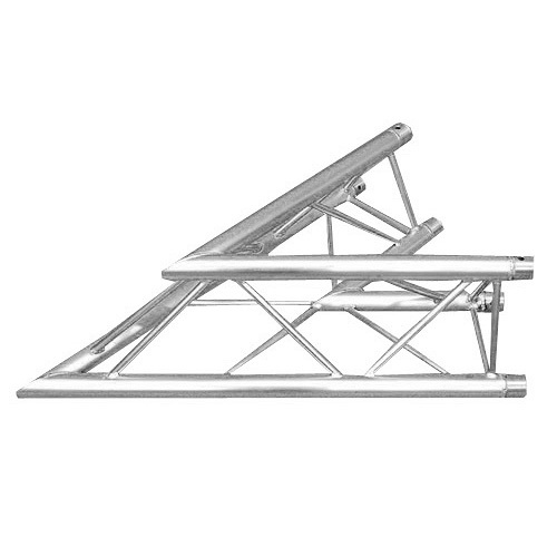 Koncový rohový díl 45° stavební konstrukce značky Alutruss s 3-bodovým konstrukčním systémem. Rovný díl je vyroben z vysoce kvalitních hliníkových trubek, tři hlavní trubky mají průměr 50 mm a šířku stěny 2 mm, příčky mají průměr 16 mm a šířku stěny 2 mm. Konstrukce je jedinečná svou jednoduchou instalací a nízkou hmotností. Vhodné pro přehlídky, instalaci v obchodech, na diskotékách a v divadlech.
