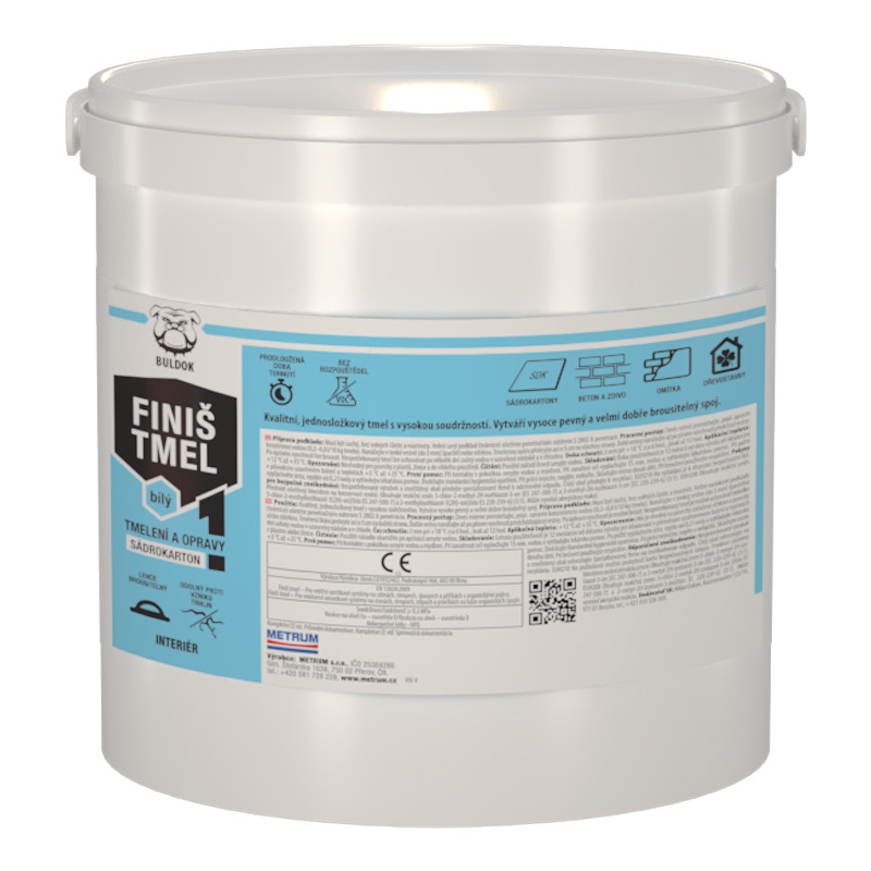 Finiš tmel BULDOK je vysoce kvalitní jednosložkový tixotropní tmel s vynikající soudržností, který se snadno nanáší a brousí. Je ideální pro tmelení spár sádrokartonových desek, vyrovnávání nerovností na omítkách i hladkém betonu a opravy trhlin či prasklin. Díky své univerzálnosti najde uplatnění při opravách zdiva, sádrokartonu, betonu i dřeva. Tmel je určen pro použití v interiérech, dobře přilne k savým povrchům a po zaschnutí je možné jej bez problémů přetírat. Vytvrzuje odpařením vody a neobsahuje žádná rozpouštědla, což zajišťuje bezpečnou a čistou aplikaci bez nepříjemných zápachů.
