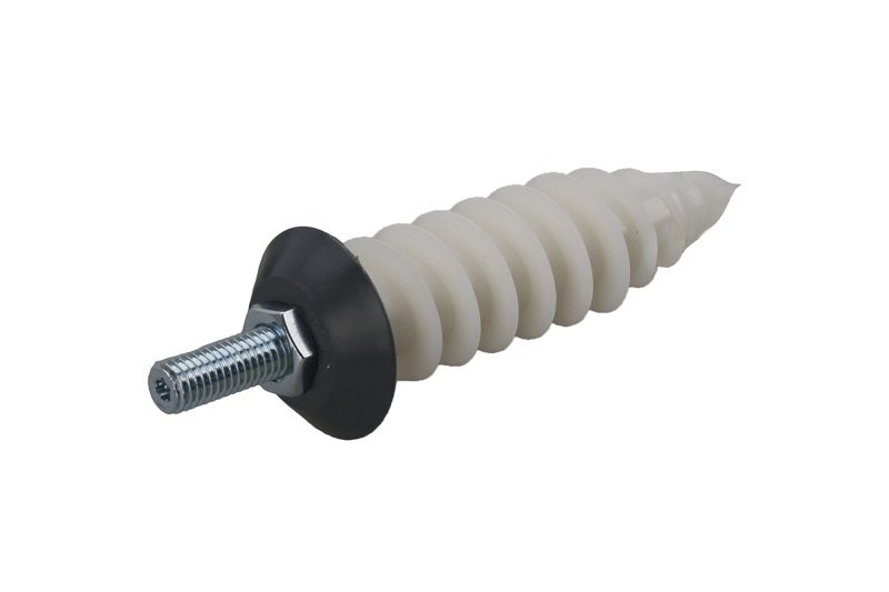 hmoždinka do izolačních materiálů 10 cm elegantní a funkční způsob uchycení dešťových svodů do zateplené fasády hmoždinka eliminuje nežádoucí tepelný most a spoj je tak pevný a nenarušuje funkčnost zateplovacího systému součástí hmoždinky je krytka v odstínu (viz název), která 100% zakrývá napojení hmoždinky v omítce a výsledný detail je tak esteticky dokonalý materiál : hmoždinka - nylon polyamid PA6, šroub: Ocel 4.6 podle DIN EN ISO 898-1, krytka - HDPE vysokohustotni polyetylen, podložka - XPE expandovany polyetylen Minimální tloušťka izolace, do které lze hmoždinku použít je 10 cm! Nosnost kotvy až 8kg