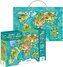 Zestaw zawiera tablicę magnetyczną z mapą świata, 36 elementów magnetycznych z wizerunkami zwierząt zamieszkujących określone regiony oraz sznurek umożliwiający wygodne przechowywanie na ścianie pokoju dziecięcego.