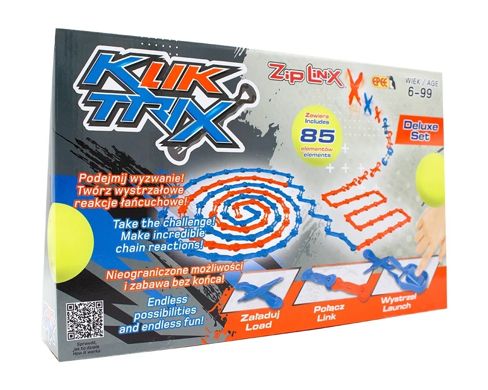 KlikTrix - zestaw De Luxe od Epee to prezent na każdą okazję! Wystrzałowa zabawka na miarę XXI wieku!KlikTrix to zabawka dla młodych konstruktorów i dla wszystkich, którzy uwielbiają wystrzałowe efekty. Najpierw łączymy klikery. Możemy układać je w najrozmaitsze wzory. Potem podłączamy wyrzutnię...
