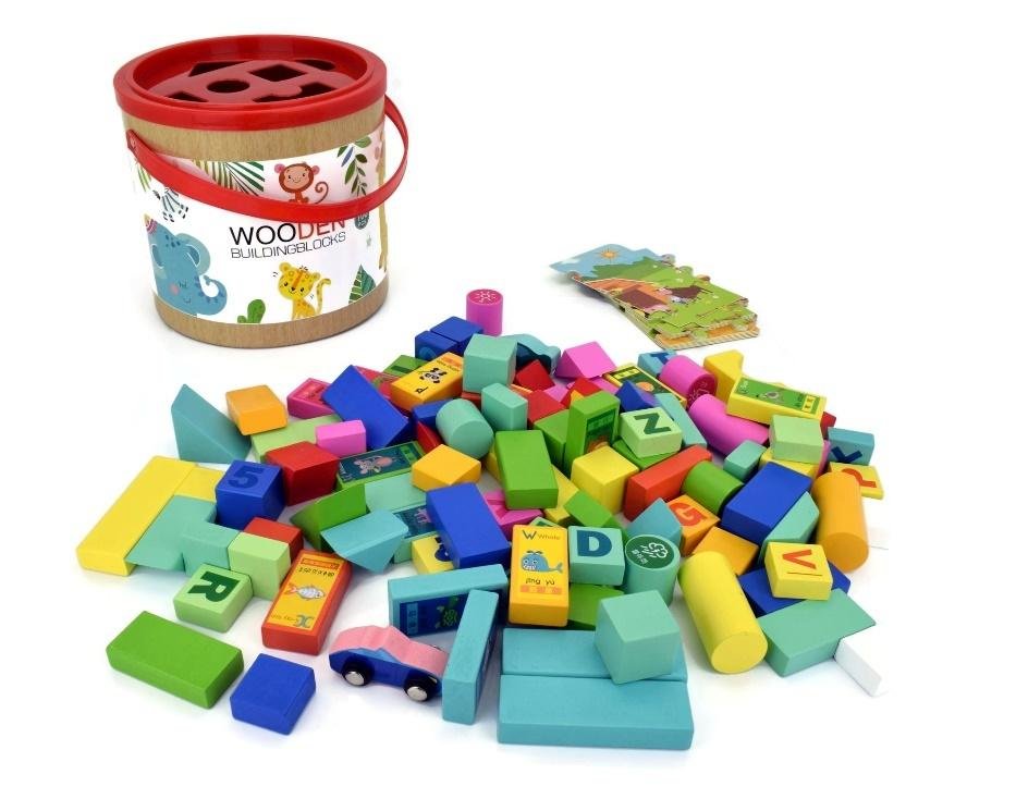 Drewniane klocki ekologiczne, dzięki różnorodności barw, kształtów i wzorków, zapewnią dziecku nie tylko dobrą zabawę, ale również pomogą w nauce kreatywności, logicznego myślenia i rozpoznawania podstawowych kolorów i figur. Zabawę urozmaici dopasowywanie klocków do odpowiednich kształtów w plastikowej nakładce dopasowanej do pojemnika. Aż 100 klocków drewnianych to nie tylko sposób na zabawę, podczas której budujesz, ale także rozwijasz wyobraźnię przestrzenną, kreatywność i zdolności manualne. Klocki są kolorowe, posiadają wzory, litery, liczby i symbole, co dodatkowo zwiększa kreatywność. Podczas wrzucania klocków do sortera uczymy się rozróżniać, kształty i dopasować je do otworu. Uczy to logicznego myślenia.