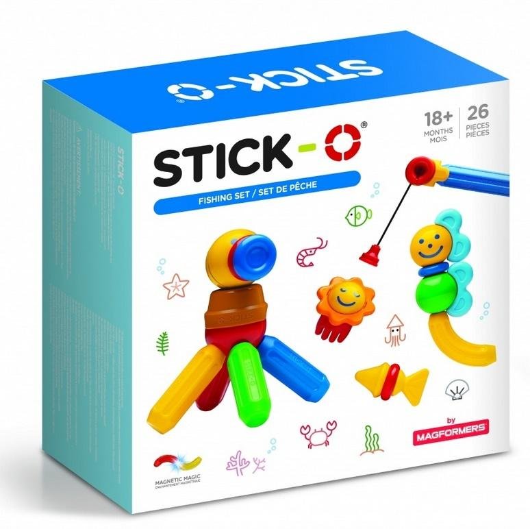 Magformers jest globalnym producentem niezwykłych i oryginalnych klocków magnetycznych, wykonanych z wysokiej jakości materiałów. Każdy klocek zawiera neodymowe magnesy, które silnie się ze sobą przyciągają. Stick-0 to nowa seria dla dzieci od 18 miesiąca życia, która pozwala na odkrycie edukacyjnej siły magnetycznych klocków. Zestaw wędkarski zawiera 26 różnokształtnych elementów, które pozwalają na złożenie wielu ciekawych konstrukcji.