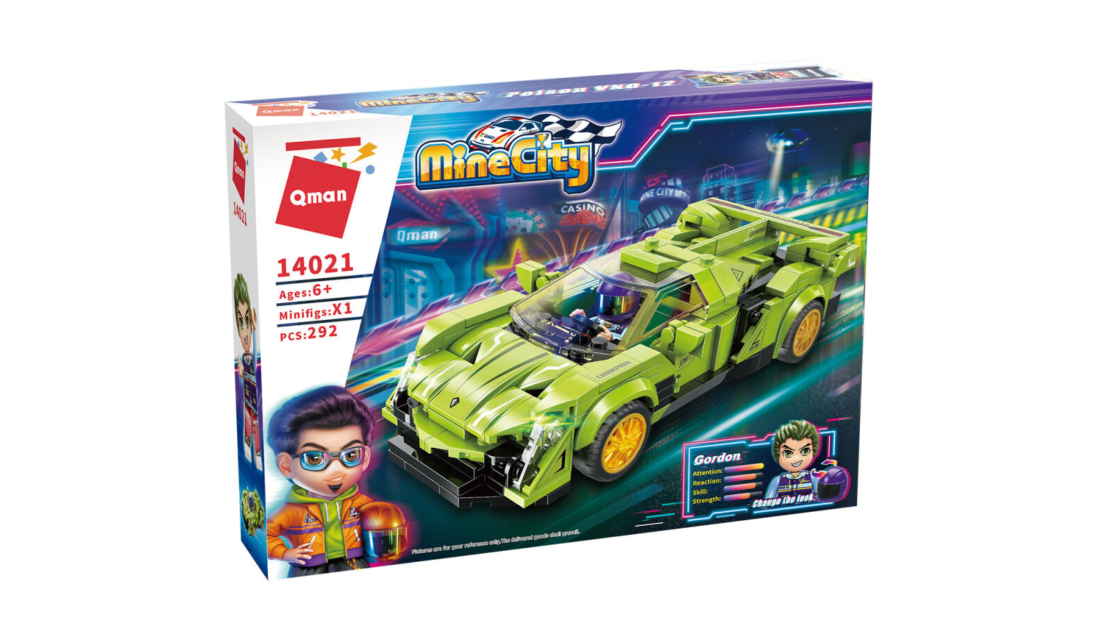 Stavebnice závodního auta s figurkou řidiče. Díly jsou zdobeny polepy s motivy ze závodního prostředí. Hlavní vlastnosti: