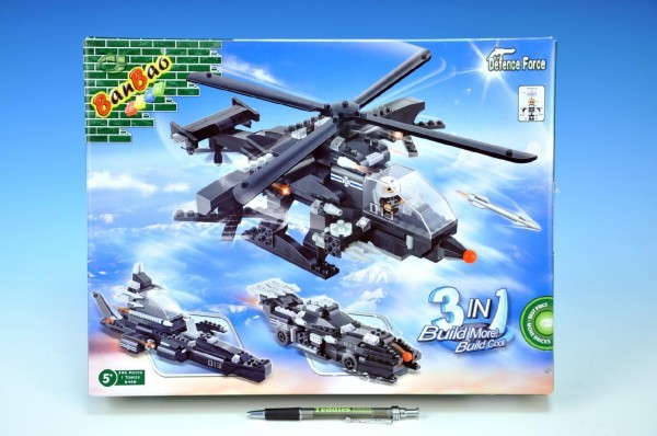 Stavebnice Banbao Vrtulník, vozidlo, vznášedlo 3v1 295ks + 1 figurkva v krabici 37,5x28,5x6,5