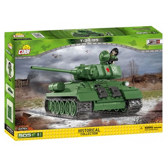Postavte si tank T34/85 z roku 1944. Postavený model má rozměry 27 cm na délku, 12 cm na šířku a 13,5 cm na výšku. Balení obsahuje 400 kostek stavebnice a 2 figurky vojáků. V balení najdete arch samolepek pro označení tanku sovětskými nebo polskými insigniemi.