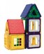 - Magnetická stavebnice s různými tvary dílků pro sestavení domu a dalších struktur.