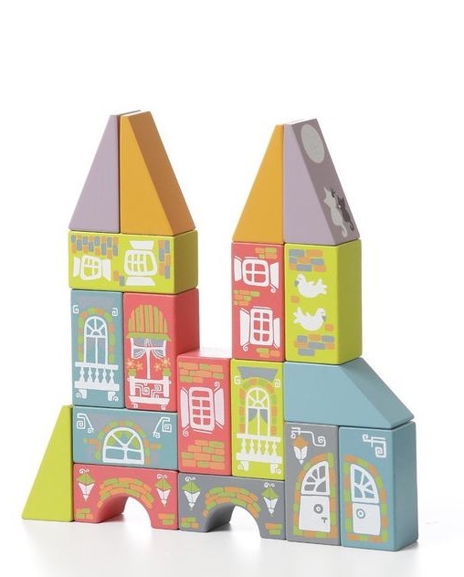 Obsahuje 18 dřevěných kostek. Baleno v papírové krabičce. Vhodné pro děti od 18 měsíců.