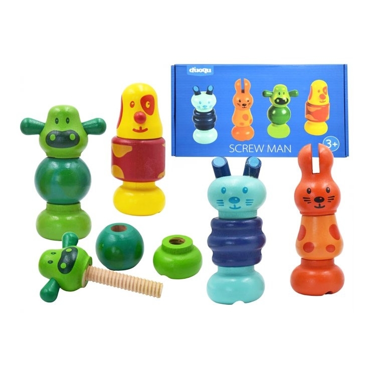 Dřevěná zvířátka na šroubování. Balení obsahuje čtyři zvířátka. Nevhodné pro děti do 3 let. Výška zvířat je 10,5 - 12cm. číst celé