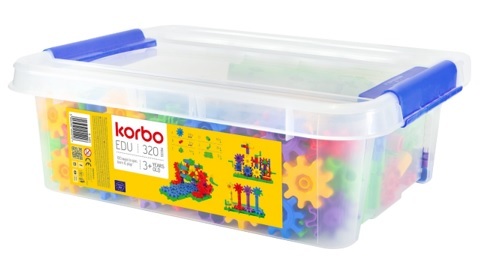 Plastová stavebnice KORBO obsahuje jedinečné díly umožňující rozpohybovat postavené předměty. Nabízí množství variant pro točení, učení se a hraní. Prostřednictvím stavebnice KORBO se děti seznamují se základy mechaniky, zlepšují koordinaci oko-ruka a učí se barvocitu.