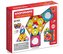 MAGFORMERS CHALLENGER SET to klocki z wbudowanymi silnymi magnesami neodymowymi, które zawsze się przyciągają. Wystarczy zbliżyć do siebie ściankami dwa klocki, a one natychmiast ze sobą się połączą. Za pomocą klocków wzorowanych na kształt figur geometrycznych można zbudować wspaniałe trójwymiarowe budowle. W skład zestawu wchodzą: 4 trójkąty, 8 pięciokątów, 10 kwadratów oraz 8 siedmiokątów.