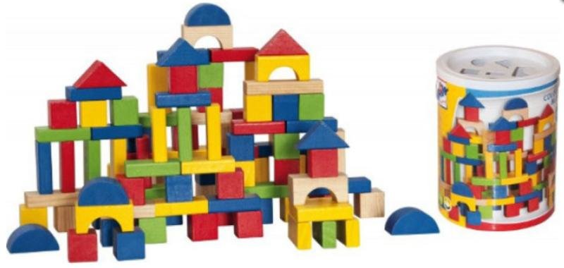 Tato robustní a barevná sestava dřevěných kostek nabízí celkem 100 dílů různých velikostí, které lze libovolně skládat a kombinovat. Vaše dítě může stavět stále nové a nové tvary, což přináší nekonečnou zábavu a rozvíjí jeho schopnosti logického myšlení.