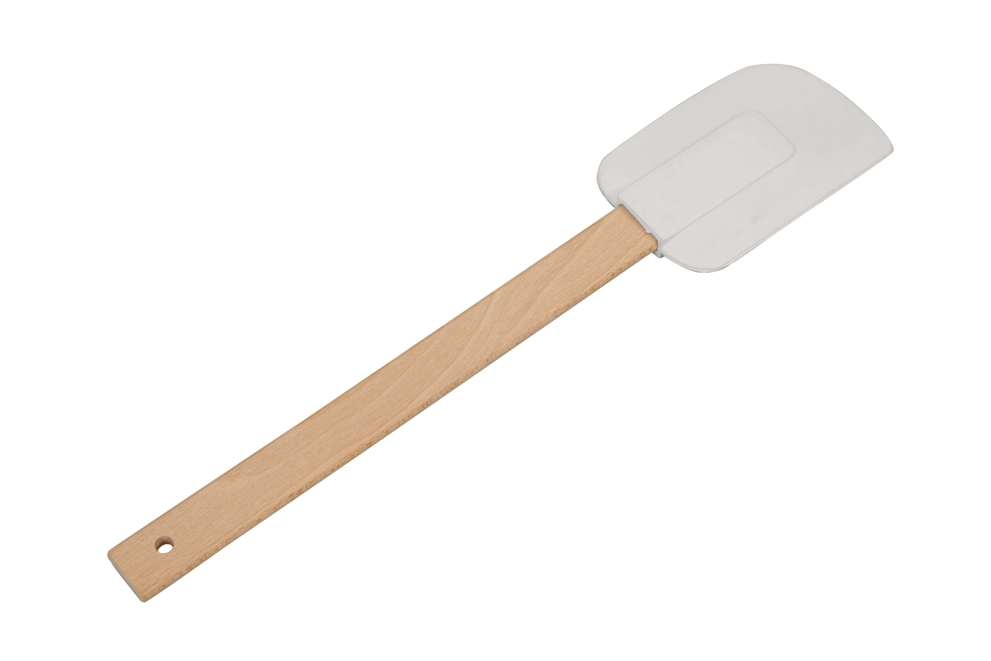 Stěrka o délce 29 cm je ideální pro stahování těsta, polev či krémů a dalších potravin. Pohodlná dřevěná rukojeť zajišťuje pevný a příjemný úchop, takže práce jde od ruky bez zbytečné únavy. Gumová část stěrky nejenže efektivně setře zbytky potravin a těsta z misek či pracovní plochy, ale také se snadno čistí, což šetří váš čas po dokončení vaření.