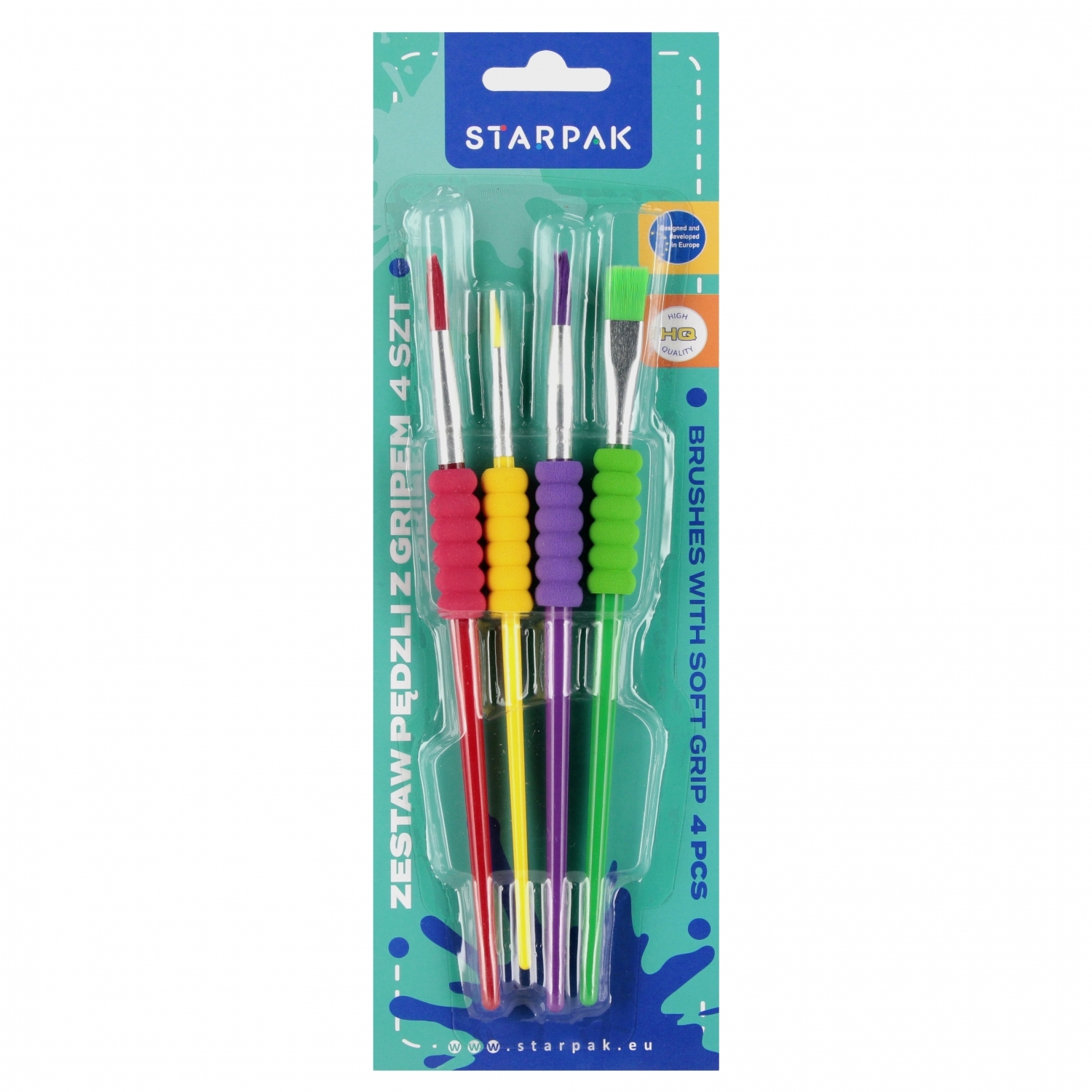 Zestaw pędzli szkolnych z gripem 4szt. STARPAK 563037